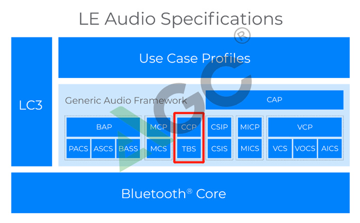 LE Audio技术规范的整体架构如下图所示,红框内的技术规范即是Bluetooth SIG在2021年3月9日正式发布(Adopted)的关于通话控制(Call Control)的规范集: